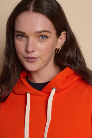 Standard fit. This garment is made from 100% natural cotton jersey. It is normal for this product to exhibit a small amount of shrinkage after the first couple of washes. This product may shrink by as much as one full size so we recommend that you size up from your regular size to allow for this shrinkage after washing. Orla is wearing a size 8.