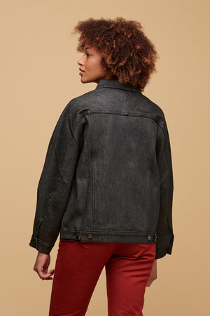 14.5oz denim, 25% cotton, 48% recycled cotton, 13% recycled polyester 13% Viscose 1% elastane