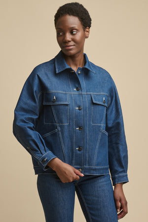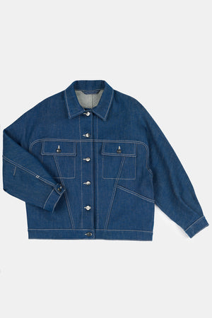 14oz denim, 46% Cotton, 40% Recycled Cotton, 13% Recycled Polyester, 1% Elastane