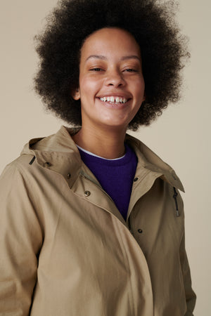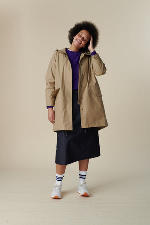 Two external flap pockets and one internal pocket Press stud cuffs split back hem