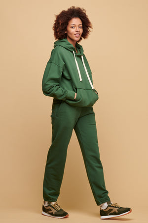 Medium weight 335g 100% organic cotton loopback jersey. 100% cotton drawstring. Fabric knitted and dyed in Leicester.