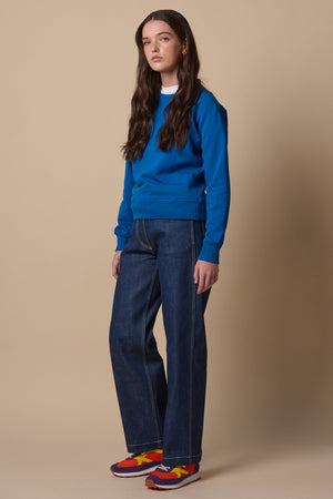 Standard fit. Orla is wearing a size 8. This garment is made from 100% natural cotton jersey. It is normal for this product to exhibit a small amount of shrinkage after the first couple of washes. This product may shrink by as much as one full size so we recommend that you size up from your regular size to allow for this shrinkage after washing. This raglan sweatshirt is available in UK sizes 6 to 18, if you like the style of this sweatshirt but require a different size, please see our women's sweatshirt for sizes 18 to 24-26.
