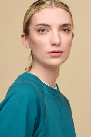 Medium weight 335g 100% organic cotton loopback jersey. Sewn with 100% cotton thread.