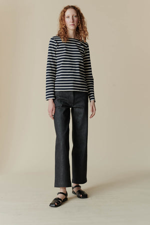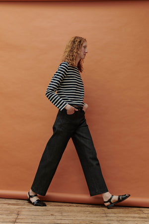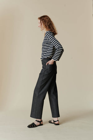 14.5oz denim, 25% cotton, 48% recycled cotton, 13% viscose, 13% recycled polyester, 1% elastane